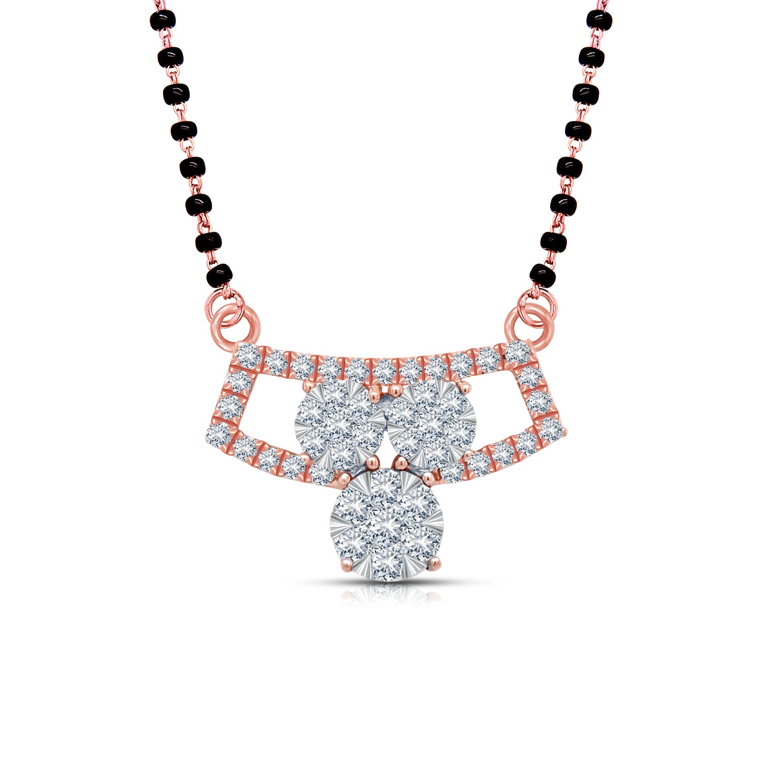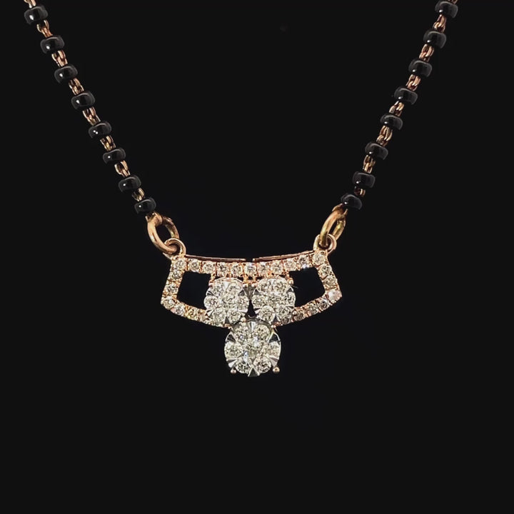 This exquisite Diamond Mangalsutra is a perfect fusion of grace and grandeur, where the past meets the present, symbolizing a love that knows no end. Diamonds sparkle like stars breaking through the night, while the black beads add a dash of mystery, like a secret waiting to be discovered. Crafted with 14kt Rose Gold, it’s a rare masterpiece—purely divine and destined to last forever.