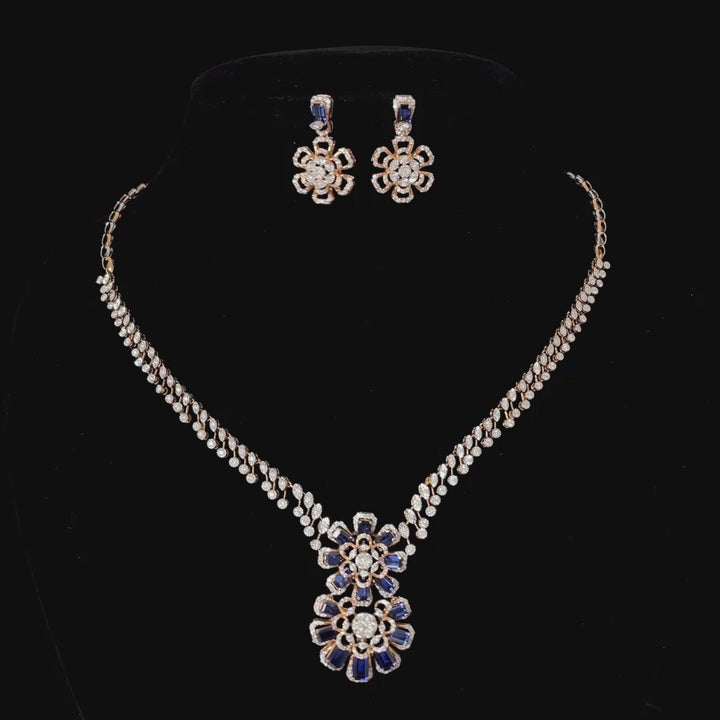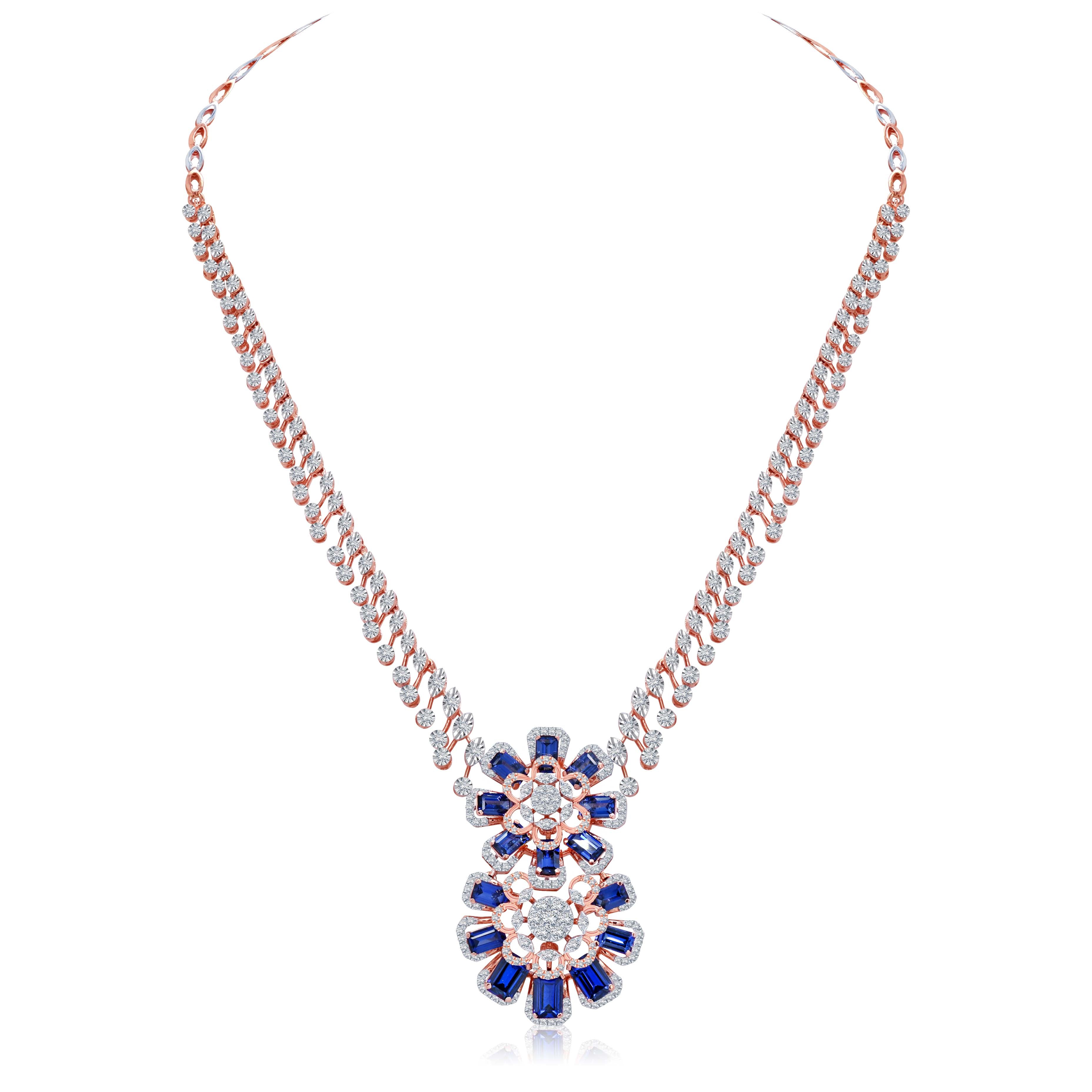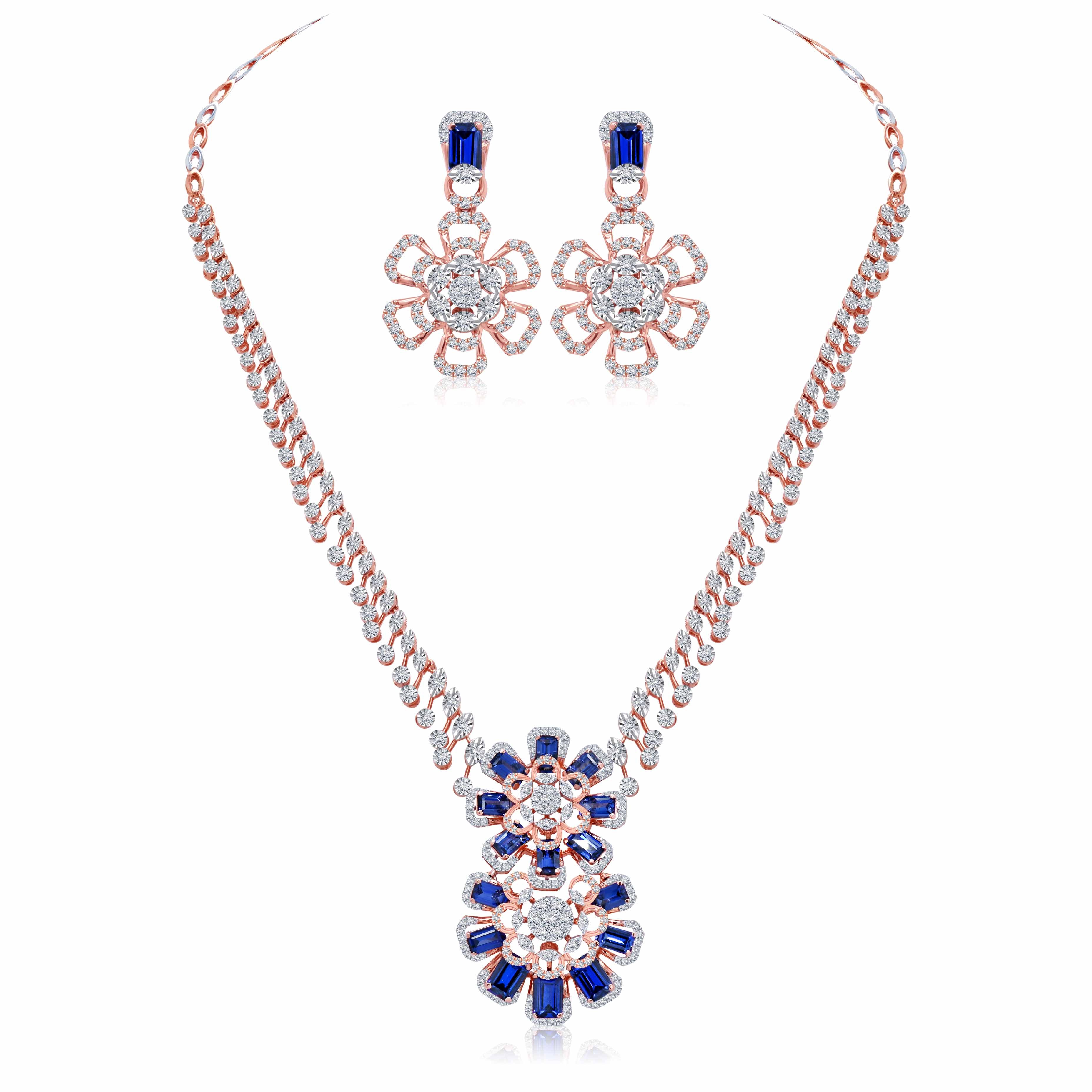 This exquisitely graceful Diamond Necklace Set crafted with 14kt Rose Gold—paired with matching earrings—is as timeless as a love song and as versatile as it is stunning, your go-to jewel for moments that matter. Wear it like a signature—simple, bold, unforgettable. Complete the look—like rhyme to rhythm—and let your neckline and ears echo the same poetry. With earrings to mirror the necklace, beauty comes full circle.