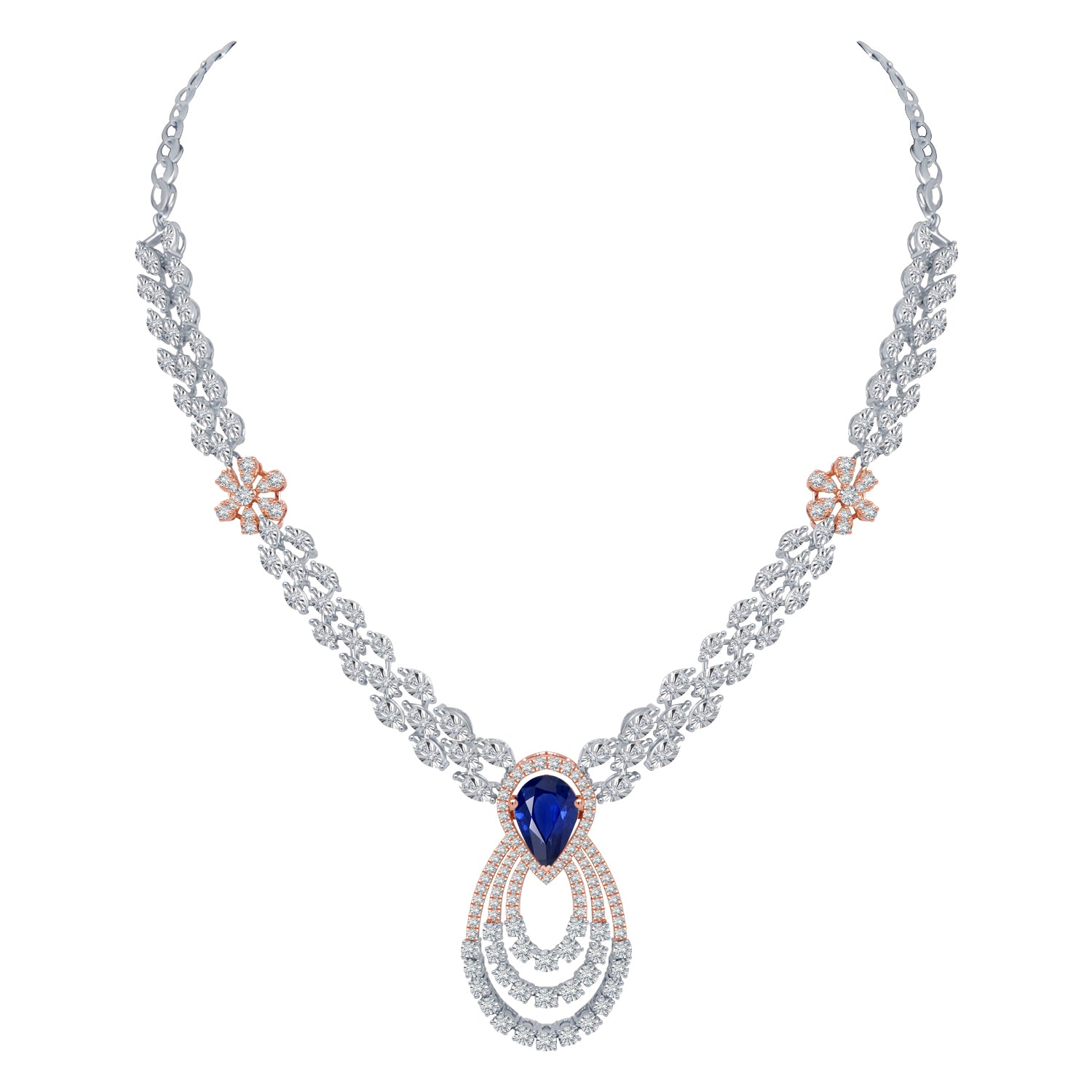 This iconic Diamond Necklace Set crafted with 14kt Rose and White Gold and paired with matching earrings blazes like a sunset—bold, radiant, and unstoppable. Perfect for gala nights, weddings, or milestones, it ignites confidence and commands attention. This isn’t just jewelry; it’s your armor of passion, your spotlight magnet. You don’t just shine—you scorch the sky. Burn bright. Shine fierce. Shine fearlessly.