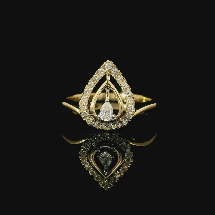 This Elegant Diamond Ring, crafted with 14kt Yellow Gold, is like finding music in silence—soft, radiant, and rare. With a gentle mystery in its glow, this ring feels as though the world itself leans closer just to witness its beauty. Style this ring with pastel dresses or chic ethnic wear for a polished appearance.